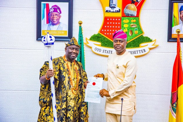 After receiving the certificate and staff of office, the Alaafin-elect had, that day, headed to Oyo town where he was given a triumphant entry by the residents of the town.