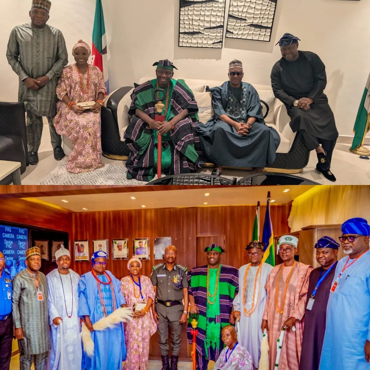 The monarch, who was accompanied by his wife, Abiwumi Owoade and distinguished Oyo men like Prince Akeem Adeyemi, member representing Oyo federal constituency and Alhaji AbdulWasiu Adebisi, later visited the Inspector General of Police, Kayode Egbetokun.